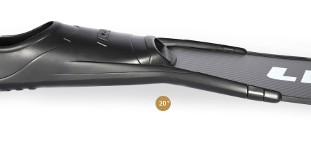 Blade’s angle is designed to 20 degrees so that freedivers can experience their feet and the blades highly integrated.